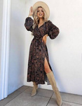 Czarno-brązowa długa sukienka damska we wzory SARA