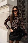 Brązowo-czarna dopasowana bluzka damska w zwierzecy print MELANIA