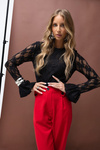 Czarna dopasowana bluzka damska z marszczeniem na rekawie ALLYSON