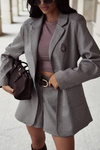 Różowo- biały dwurzędowy żakiet damski w kratkę EDAN BALMAIN.