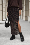 Czarna-brązowa dopasowana marszczona krótka spódnica damska w zwierzęcy print MERYLIN