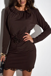 Brązowa koronkowa dopasowana sukienka damska XANA STYLE