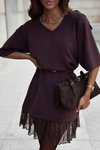 Bordowa welurowa sukienka damska z ozdobna kokarda XANA PARTY