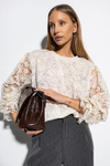 Biała koszula damska w brązowe kwiaty z kieszenią i złotymi guzikami MARIA