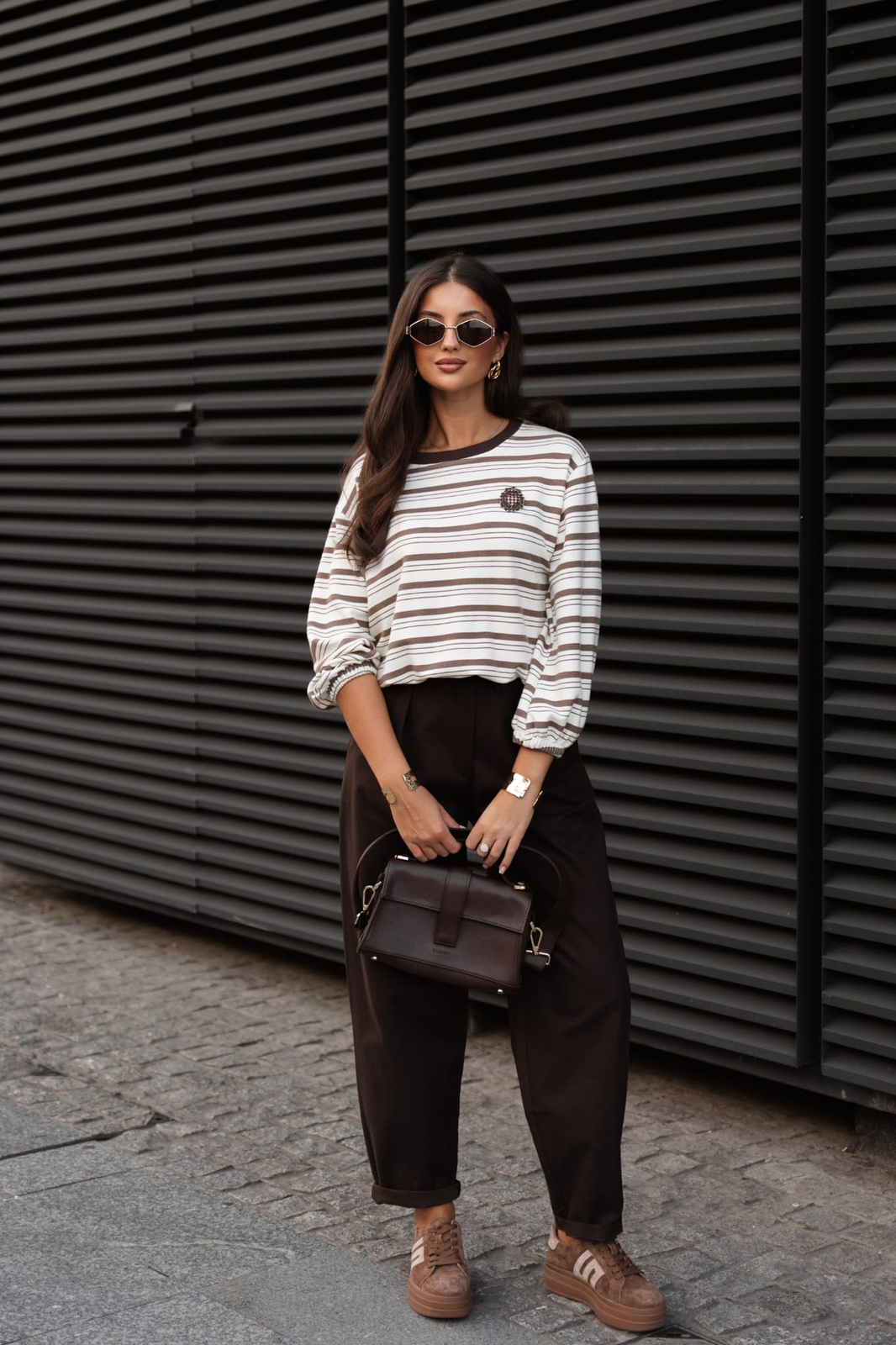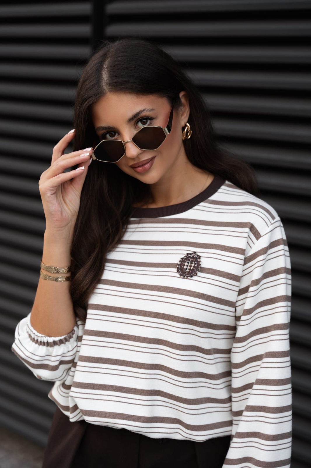 OPIS: Beżowo brazowa bluza damska w pask VIKI