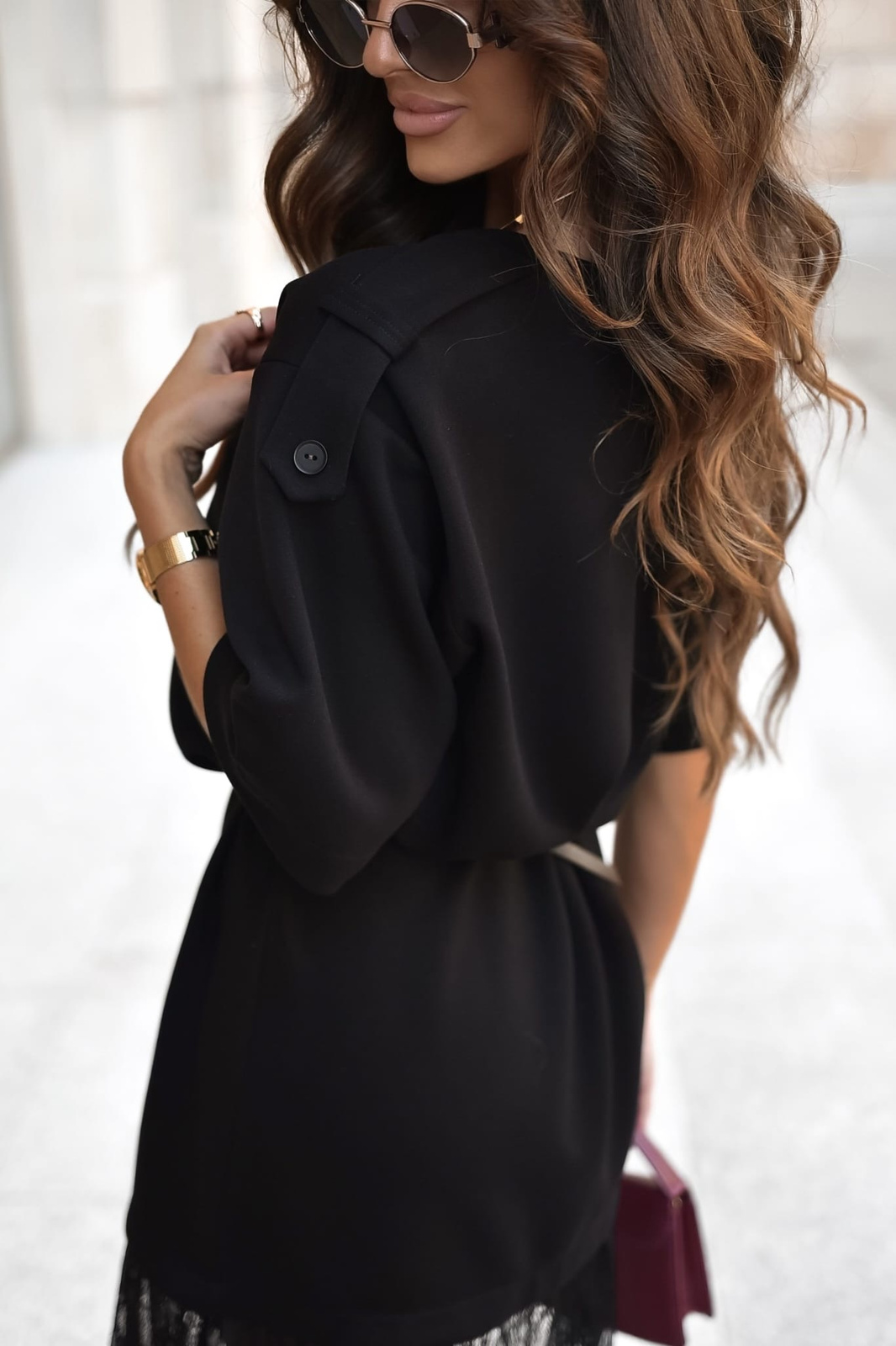 Czarna sukienka damska z ozdobna koronka XANA AUTUMN