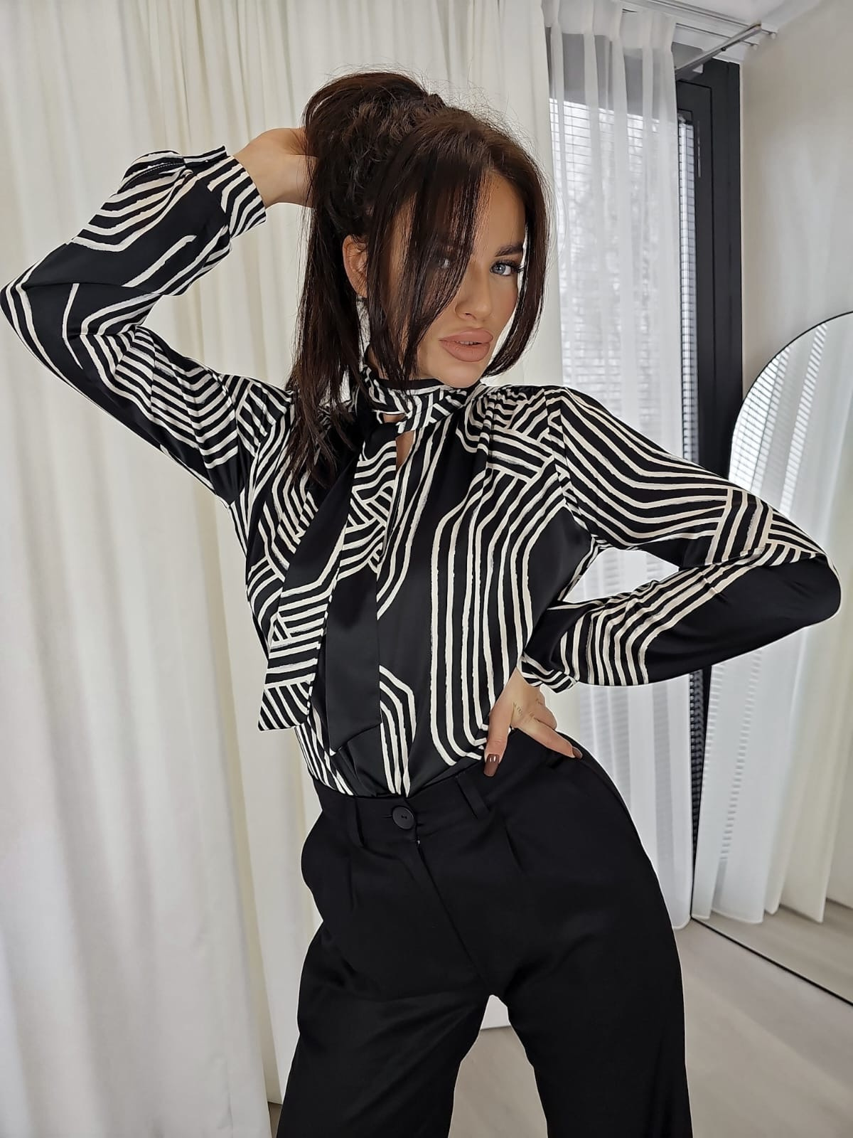 Piękna satynowa bluzka damska z wiązaniem przy dekolcie. Buzka świetnie sprawdzi się zestawiona z zamszową spódniczką lub klasycznymi dżinsami.