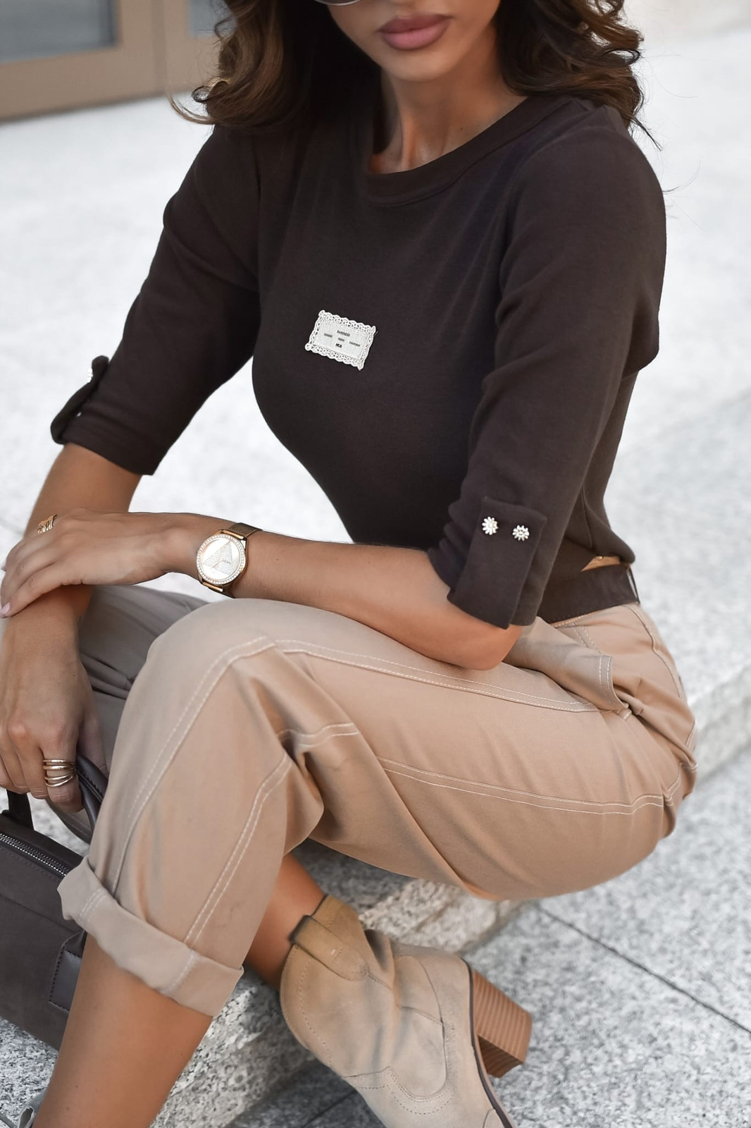 Przepiękna bluzka damska z delikatnym logo.. Cudownie wygląda zestawiony z dopasowanymi spodniami lub spodniami typu jeans.