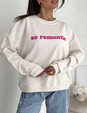 OPIS:  Jasnobeżowa bluza damska zdobiona napisem ROMANTIC