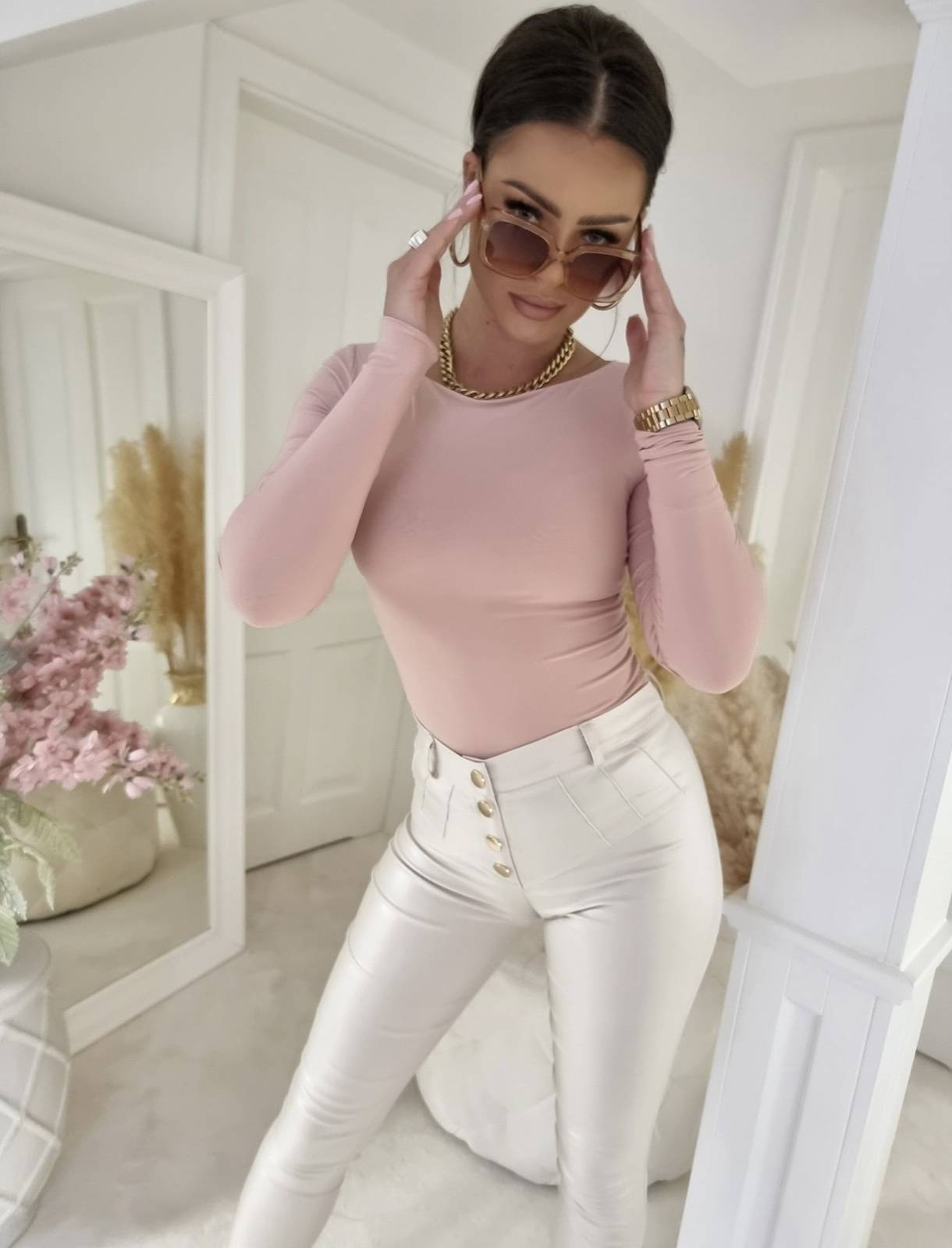 Pudrowo-różowa elastyczna dopasowana bluzka damska  LEJDIi