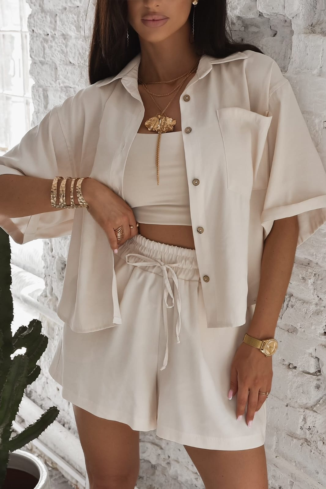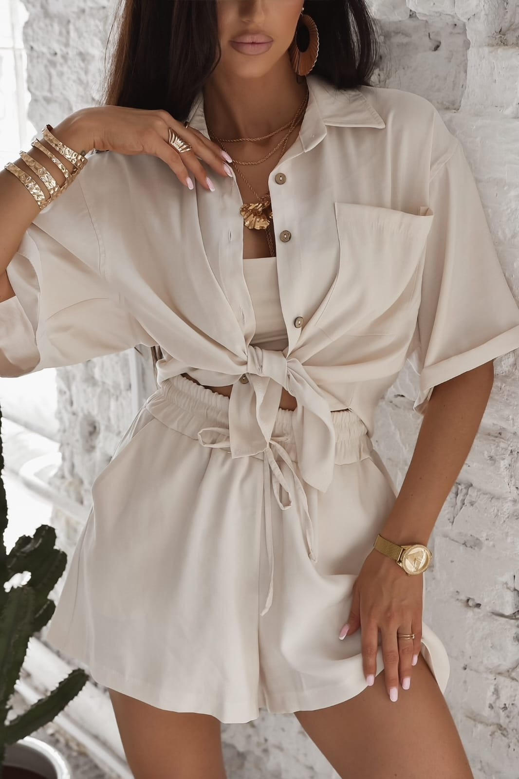 Beżowy komplet damski koszula i spodenki XANA FASHION