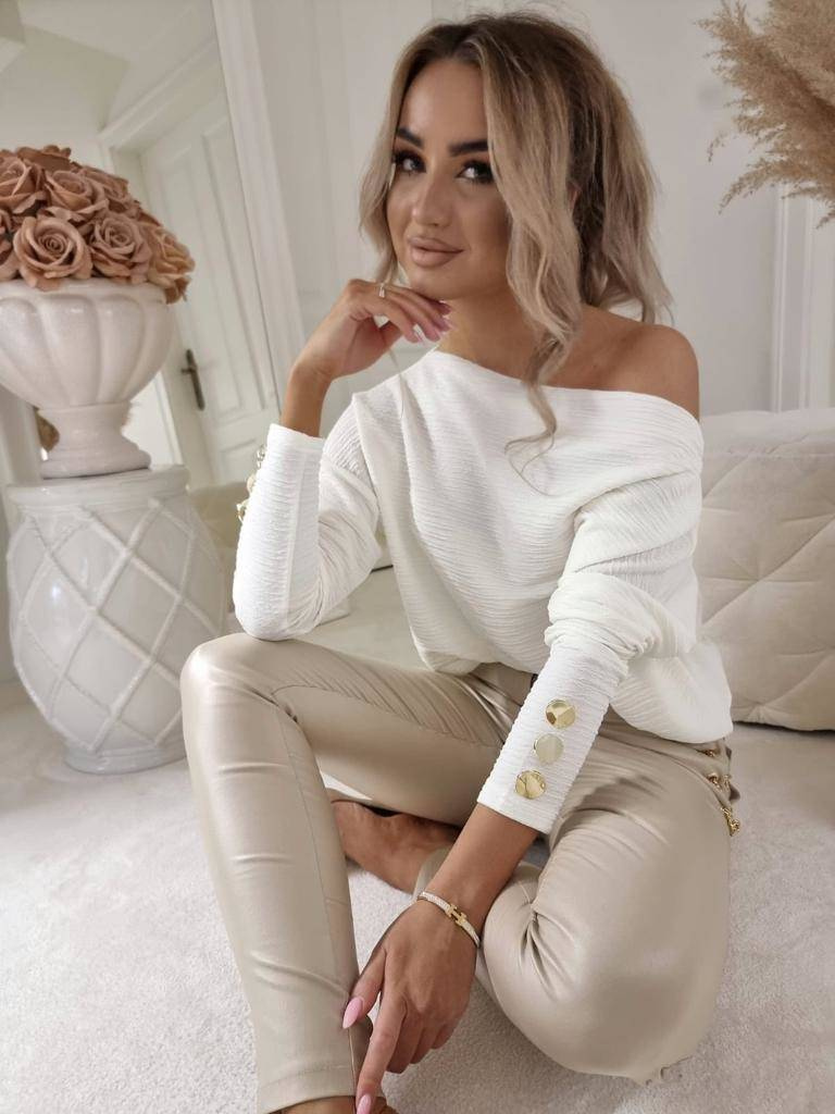 Biały sweter damski o luźnym kroju z guzikami przy rękawach BY ME ELEGANCE