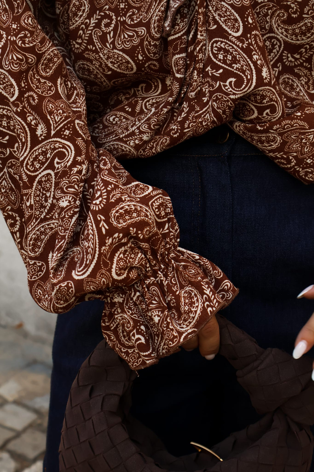 Brązowa bluzka damska z ozdobną falbanką EVE