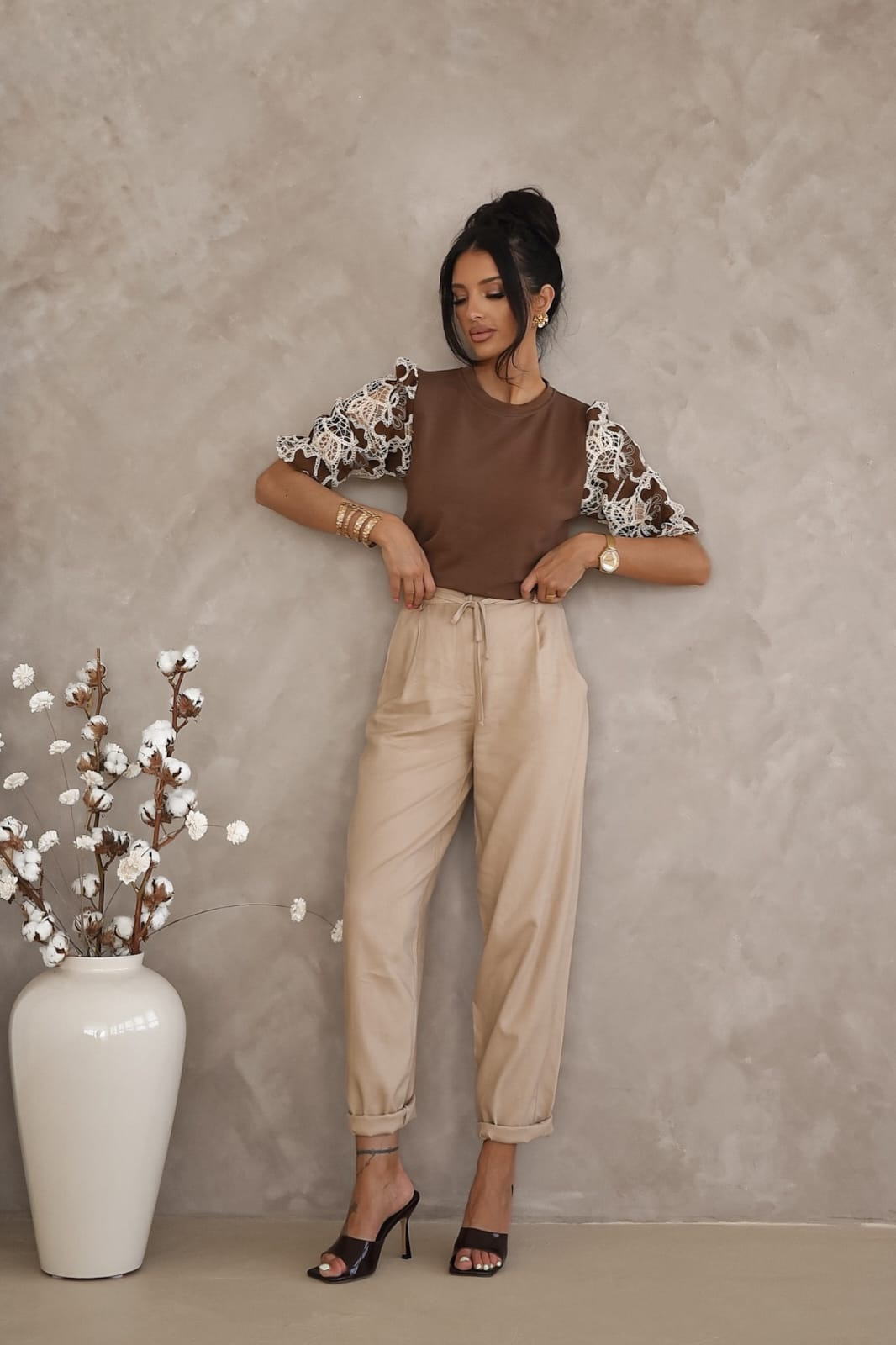 Brązowa bluzka damska z ozdobnym rękawem CAROLINE