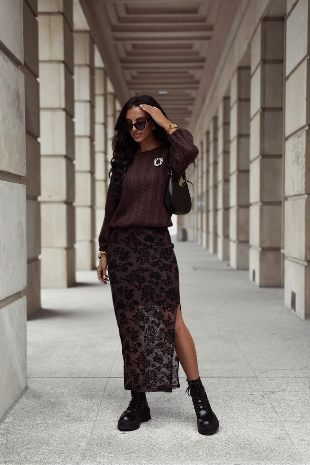 Brazowa  dopasowana   bluzka damska  z siatki AMALFI