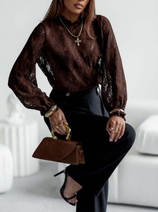 Brązowa koronkowa bluzka damska FEMME
