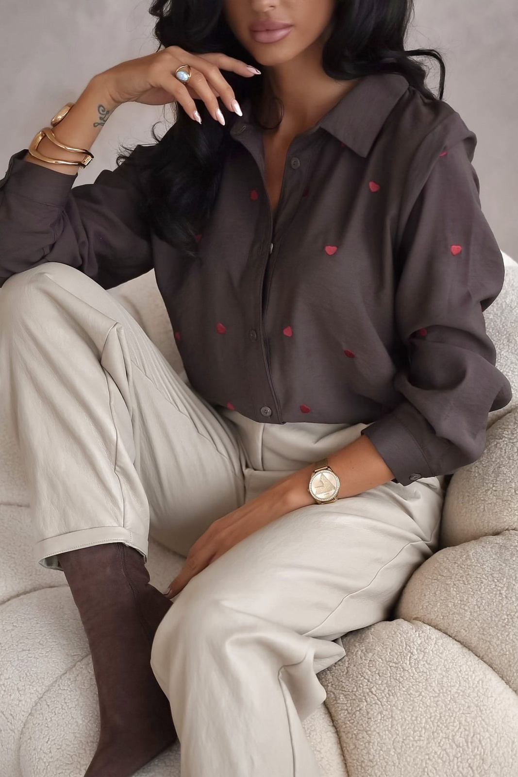 Brązowa koszula damska w serduszka XANA SUMMER