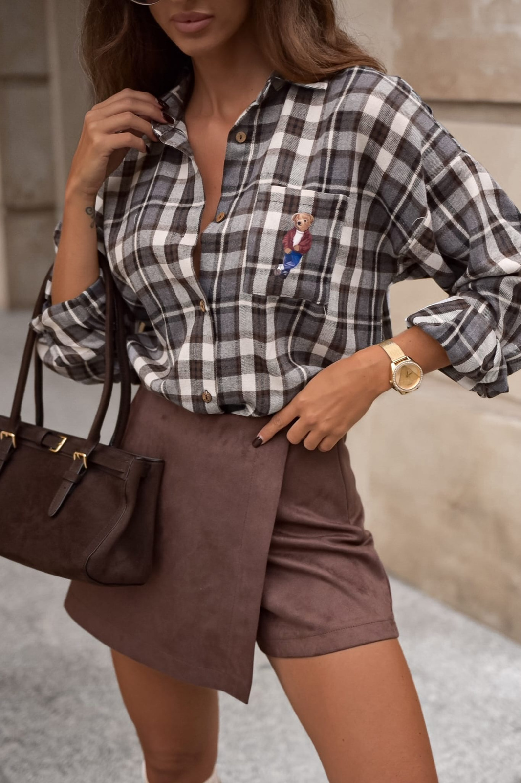 Brazowe zamszowe szorty damskie spódnico-spodenki MIA