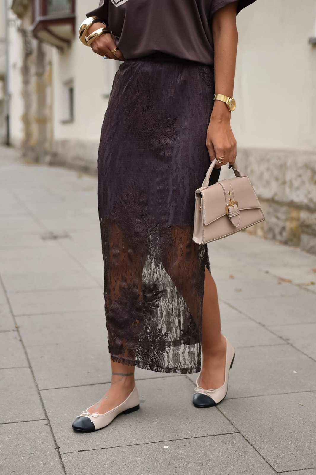 Czekoladowa koronkowa spódnica damska PULIA