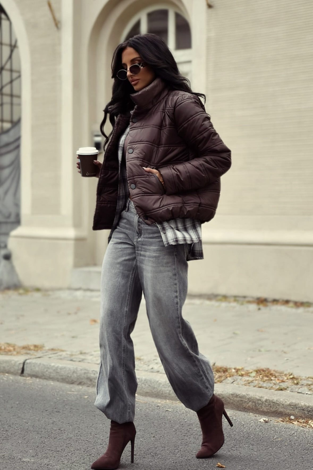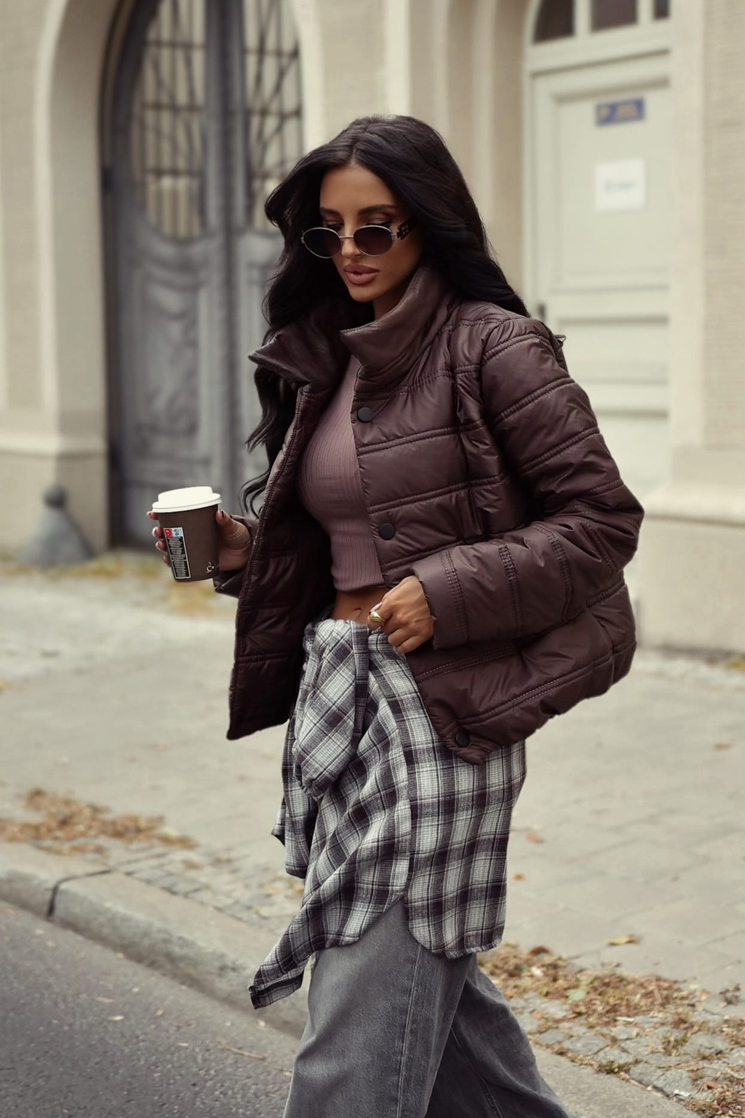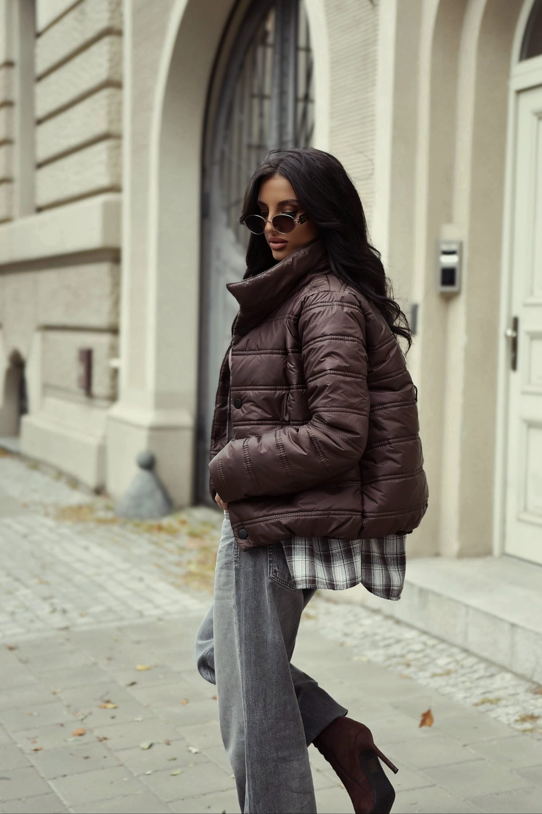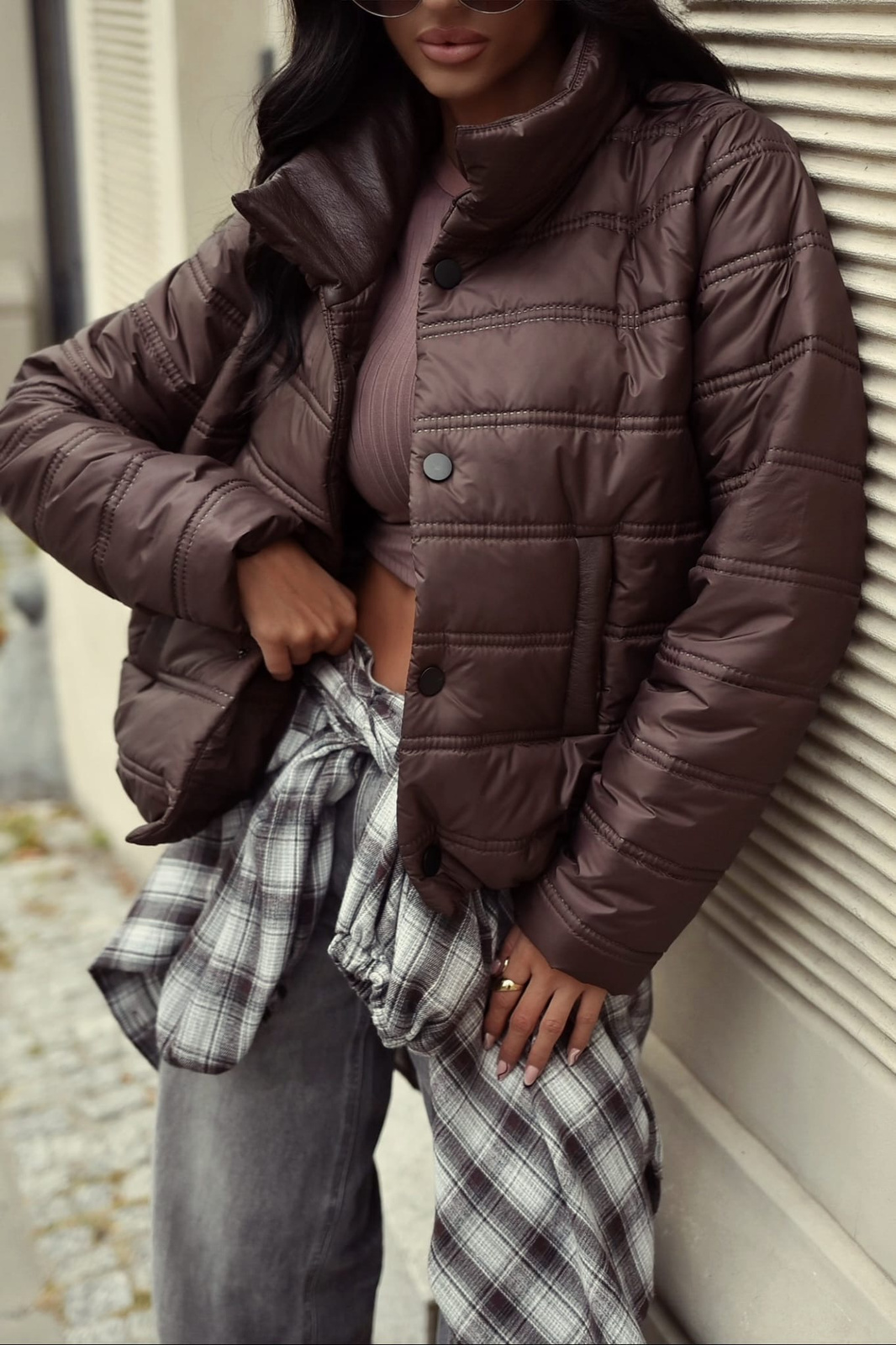 Czekoladowa krótka kurtka damska KLAUDIA