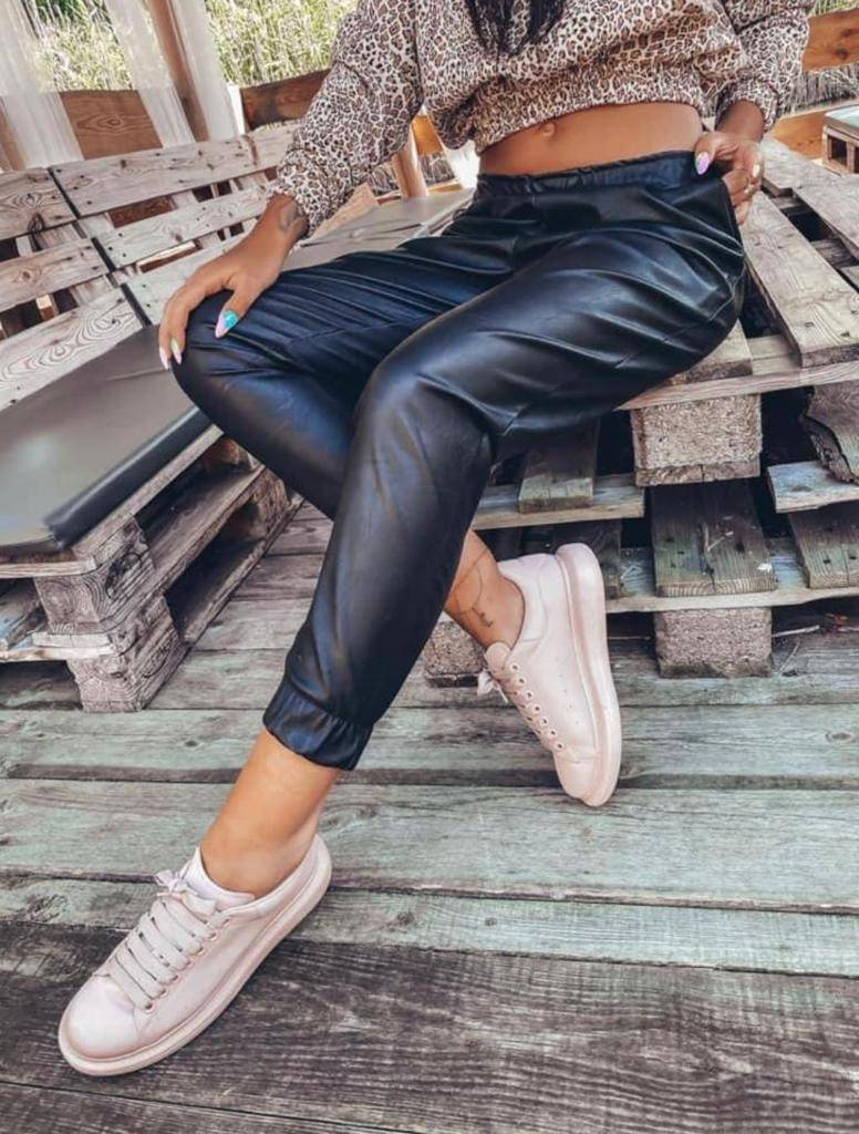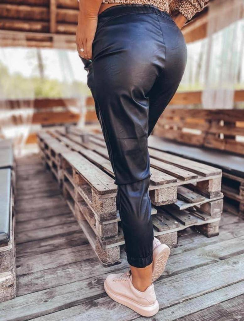 Długie czarne ekoskóra spodnie CZARNY AFTER SUMMER by Me, pas i nogawka wykończone gumką.