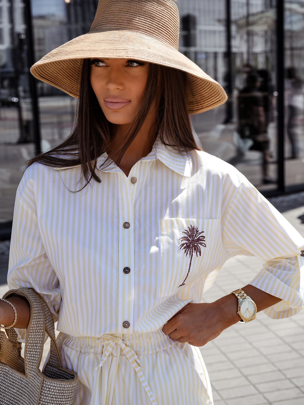 ECRU komplet damski w żółte paski koszula i spodenki XANA FASHION