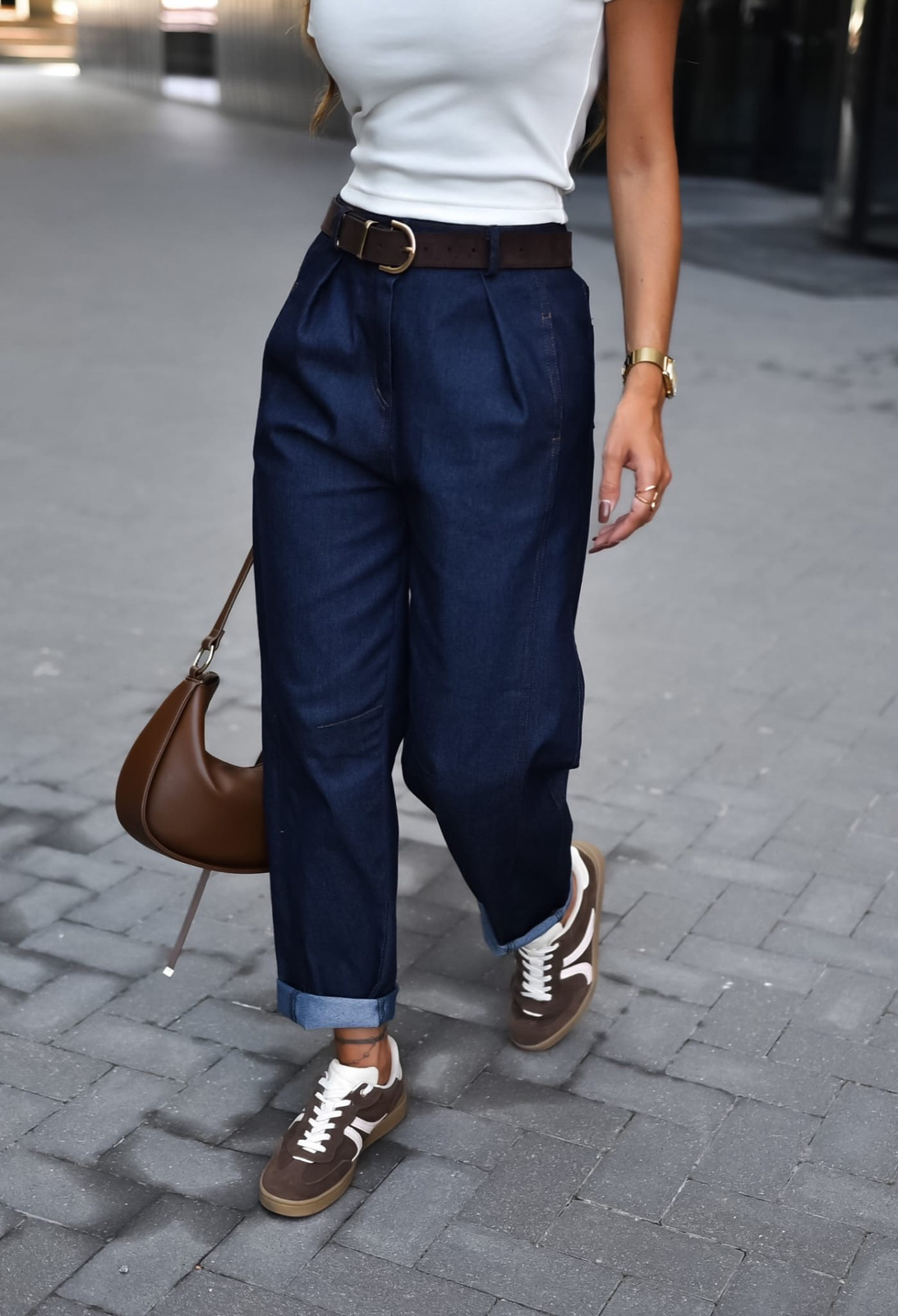 Piękne  szerokie  spodnie o kroju MOOM FIT  to świetna propozycja na nadchodząca wiosne.  Spodnie maja wyższy stan  co pięknie modeluje sylwetkę. Material nie jest uciążliwy  Idealnie komponują się z CHOCOLATE .