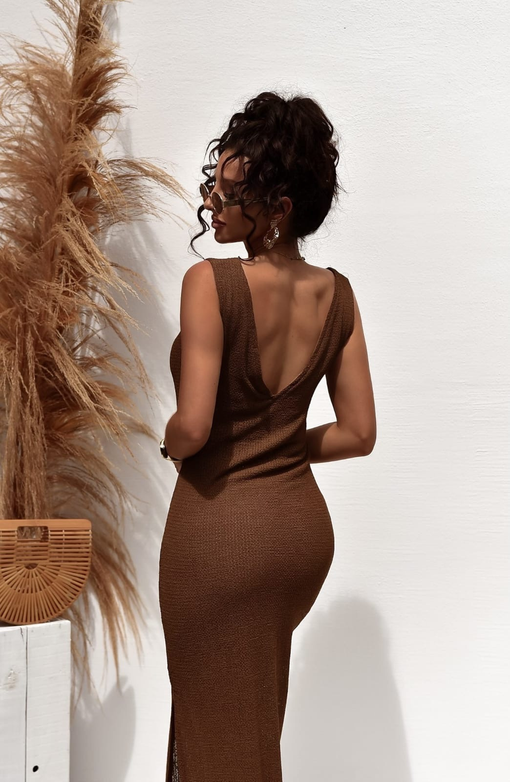 Jasno brązowa sukienka damska w ażurowy print ALLYSON