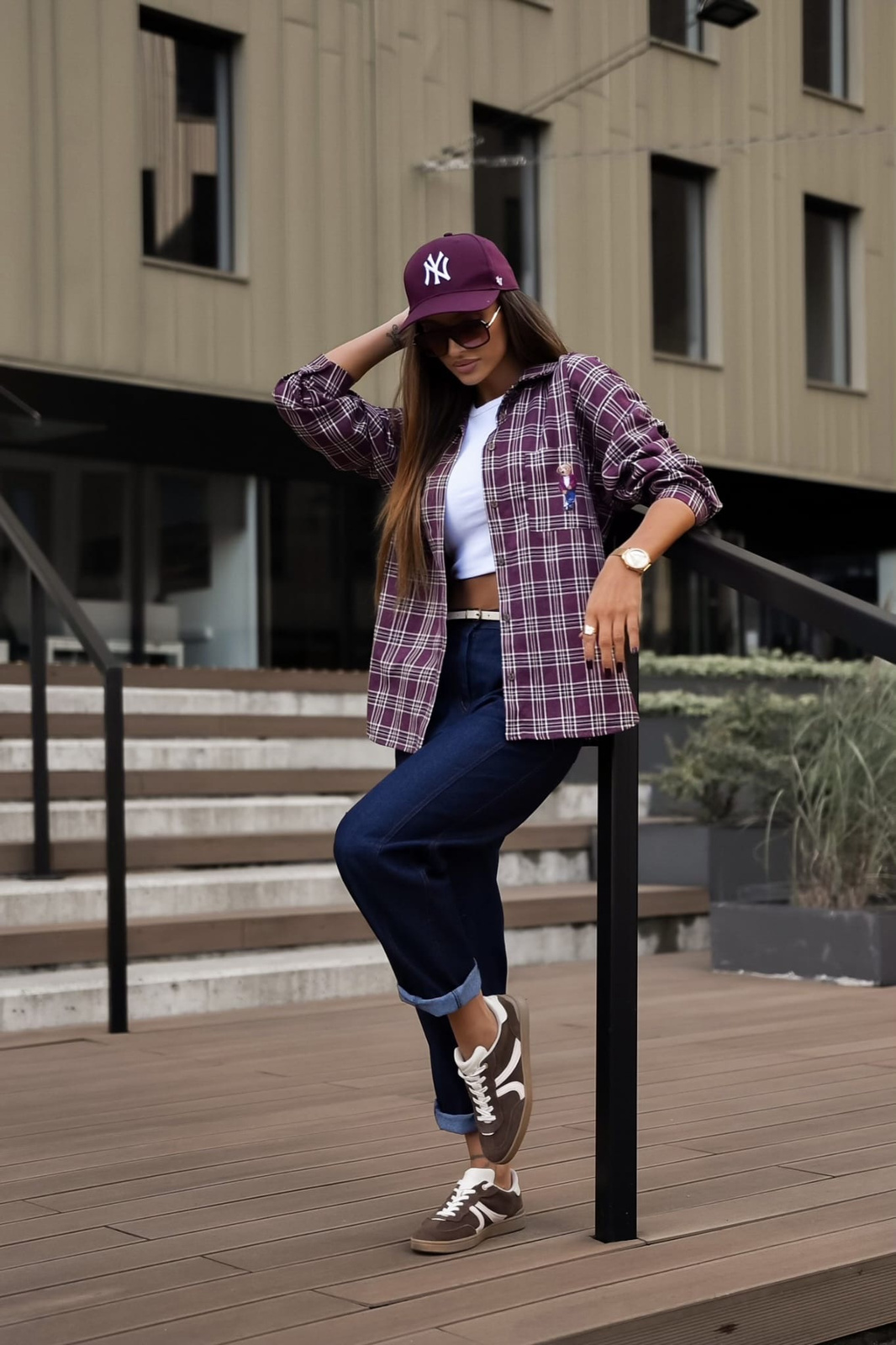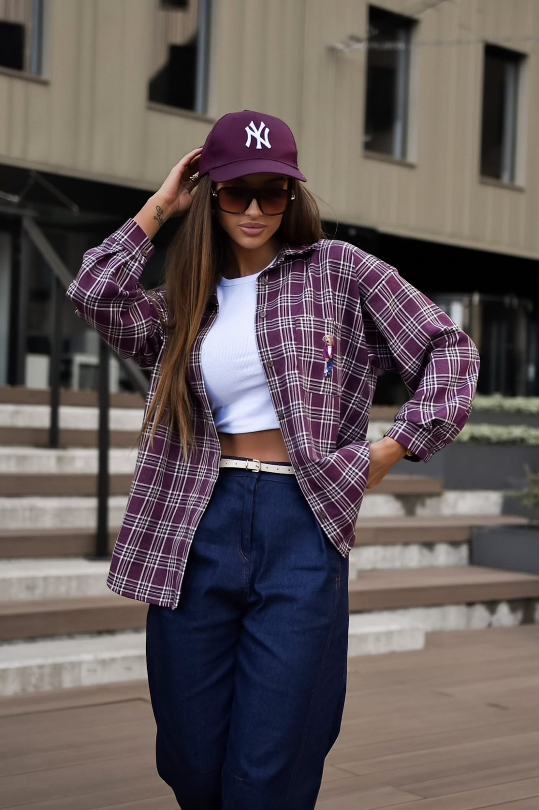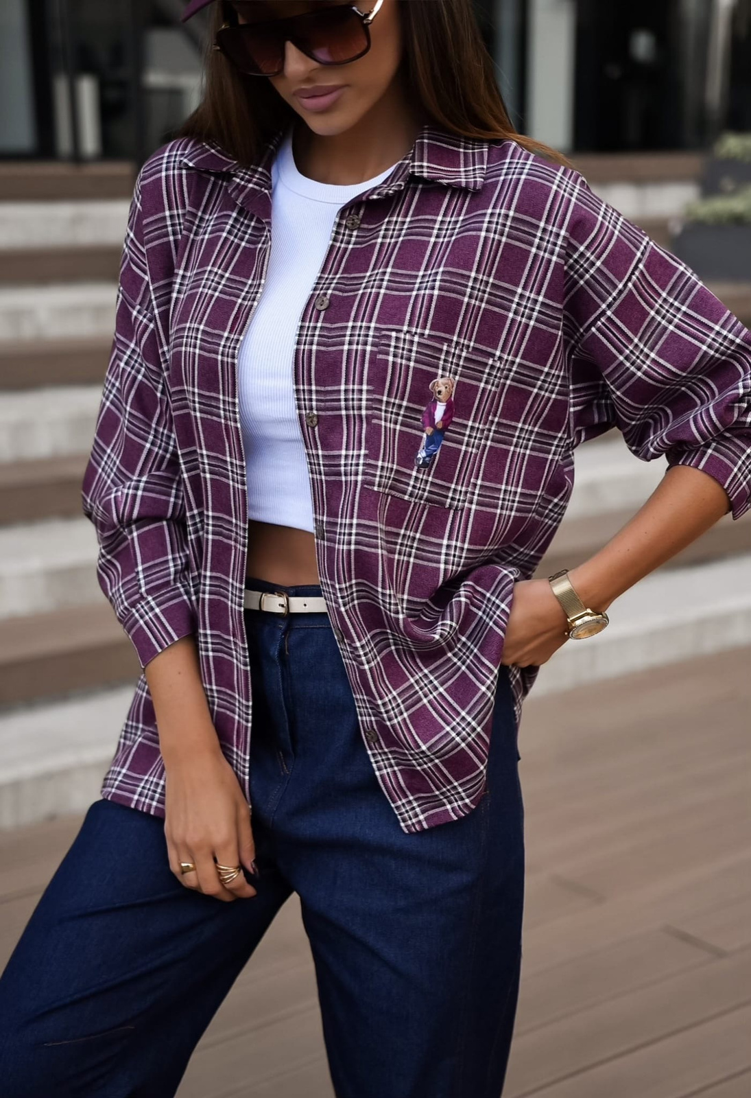 Śliwkowa koszula damska w kratę TEDDY BEAR