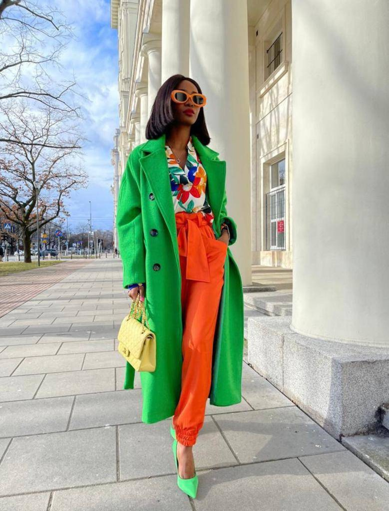 Przepiękny płaszczyk w cudownym kolorze. Pasuje do wielu stylizacji- zarówno tych z użyciem botków, jak i do tych ze sneakersami i czapką bejsbolówką.
