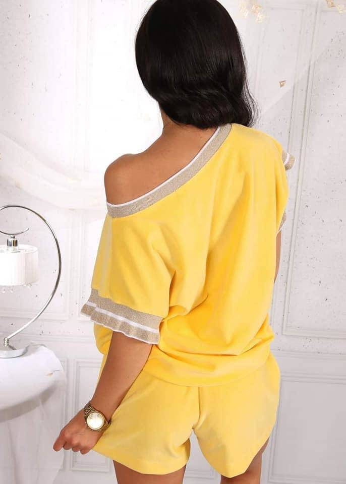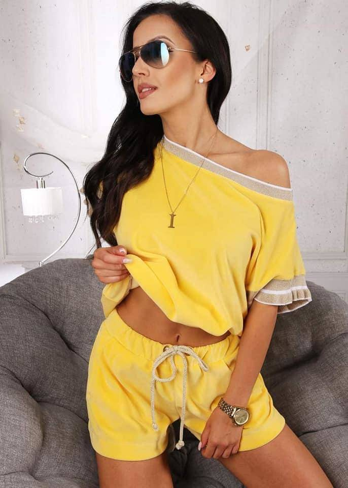 Żółty welurowy komplet dresowy bluzka i szorty COMFORT MATCH